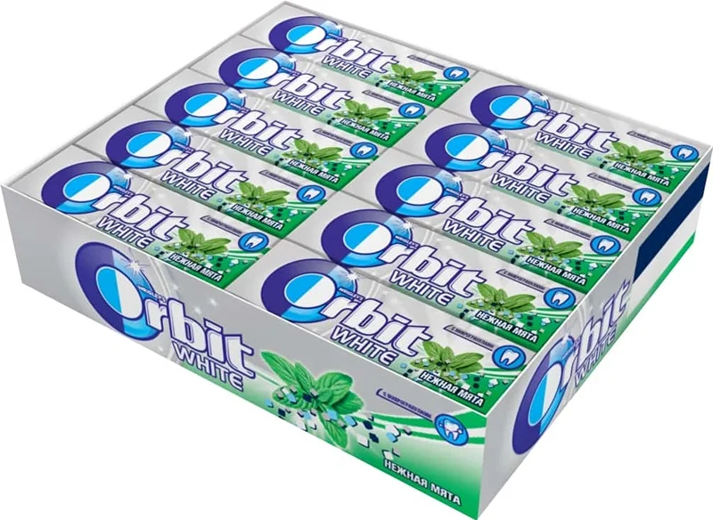 Orbit White Нежная мята - это жевательная резинка без сахара, которая дарит внутреннее ощущение уверенности, так необходимое нам в личной жизни, профессиональных и даже мелких бытовых ситуациях. Попробуйте Orbit White Нежная мята и получите ощущение свежести и заряд уверенности в нужный момент. Жевательная резинка Orbit без сахара помогает поддерживать здоровье зубов: удаляет остатки пищи, способствует уменьшению зубного налета, нейтрализует вредные кислоты, усиливает процесс реминерализации эмали. Употребление жевательной резинки каждый раз после еды способствует поддержанию чистоты и здоровья зубов в дополнение к уходу за ротовой полостью с помощью зубной щетки. Жевательная резинка Orbit без сахара позволит встретить мир с улыбкой!