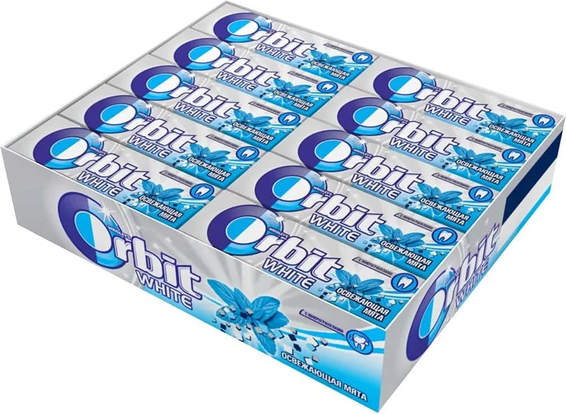 Orbit White Освежающая мята - это жевательная резинка без сахара, которая дарит внутреннее ощущение уверенности, так необходимое нам в личной жизни, профессиональных и даже мелких бытовых ситуациях. Попробуйте Orbit White Освежающая мята и получите ощущение свежести и заряд уверенности в нужный момент. Жевательная резинка Orbit без сахара помогает поддерживать здоровье зубов: удаляет остатки пищи, способствует уменьшению зубного налета, нейтрализует вредные кислоты, усиливает процесс реминерализации эмали. Употребление жевательной резинки каждый раз после еды способствует поддержанию чистоты и здоровья зубов в дополнение к уходу за ротовой полостью с помощью зубной щетки. Жевательная резинка Orbit без сахара позволит встретить мир с улыбкой!
