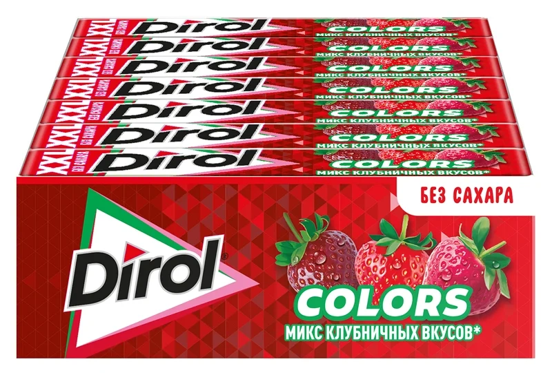 Жевательная резинка Dirol XXL Микс клубничных вкусов без сахара, 19г х 18 шт