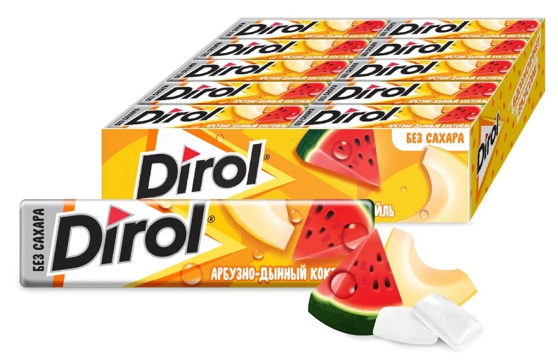 Жевательная резинка Dirol XXL арбузно-дынный коктейль без сахара, 19г