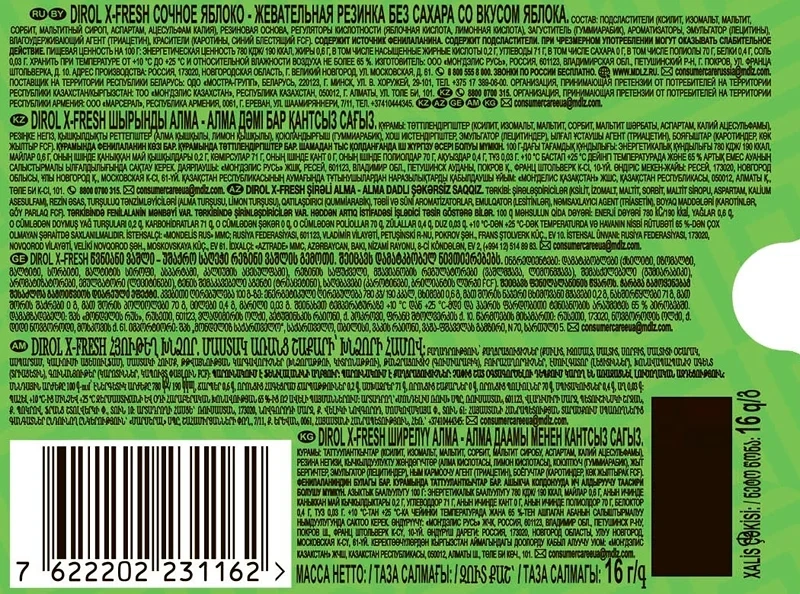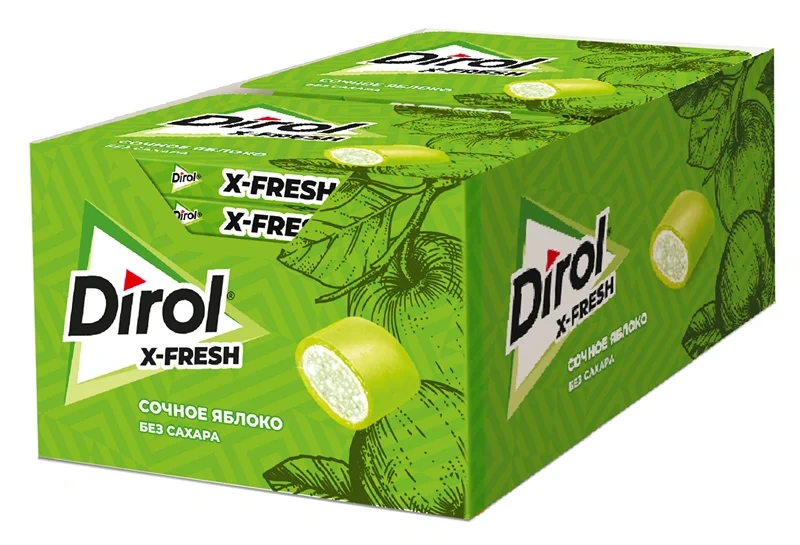 Жевательная резинка Dirol X-Fresh Сочное яблоко без сахара, 16г х 12 шт