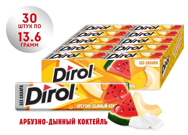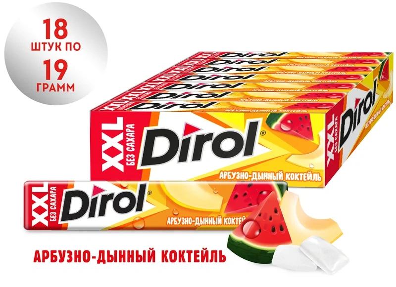 Жевательная резинка Dirol XXL арбузно-дынный коктейль без сахара, 19г х 18 шт