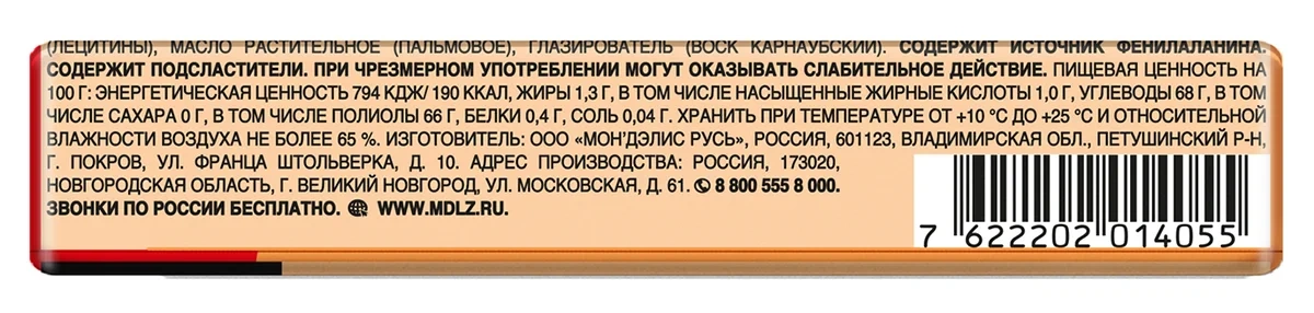 Жевательная резинка Orbit White XXL Нежная мята без сахара, 21г