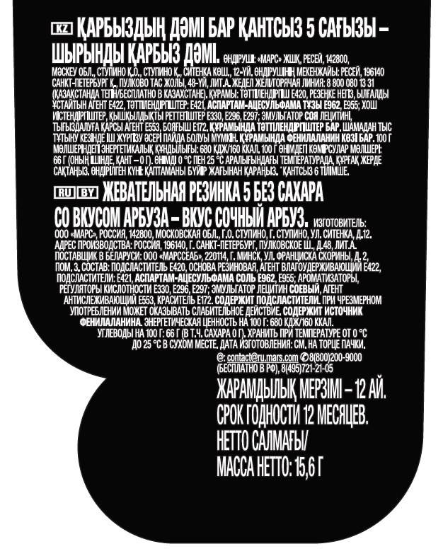Жевательная резинка Five сочный арбуз без сахара, 15.6г