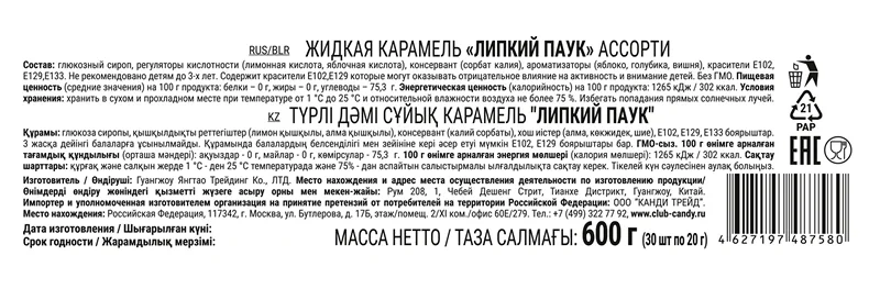 Жидкая карамель Канди клаб Липкий паук ассорти, 20г