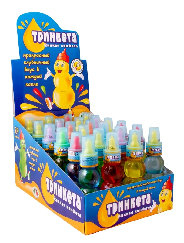 Жидкая конфета Тринкета – это оригинальный продукт итальянского производства, который перевернул все представления о сладостях! До сих пор, уже в течение 15 лет, он остается необычным и желанным для детей продуктом. Специально для Тринкеты была разработана уникальная бутылочка с умной соской, благодаря которой жидкость из нее не выливается даже в перевернутом состоянии. Бутылочка закрывается многоразовым колпачком, поэтому конфету можно пить постепенно. Бутылочки из-под Тринкеты многофункциональны, и дети с удовольствием используют их в своих играх, например, в качестве кеглей при игре в боулинг, лупы при чтении, материала при изготовлении поделок.