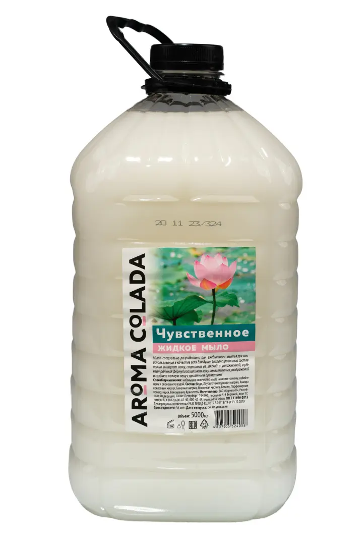 Мыло жидоке Арома Колада 5л ЧУВСТВЕННОЕ с перламутромЖидкое крем-мыло , бережно очищает и не нарушает естественный РН-баланс кожи. Содержит смягчающую питательную композицию, которая сохраняет кожу рук и оберегает их от излишней сухости. Разработано для ежедневного мытья рук или использования в качестве геля для душа.Сбалансированный состав обладает хорошим очищающим эффектом.Благодаря смягчающим компонентам сохраняет защитные функции кожи, не вызывая сухости и раздражения.рН-нейтральная формула подходит для всех типов кожи.Высокая концентрация обеспечивает антибактериальный эффект и экономичный расход.Способ примененияНанесите небольшое количество мыла на влажную кожу, добейтесь образования пены и ополосните ее водой.Составлаурилэтоксисульфат натрия, амиды кокосовых кислот, бензонат натрия, лимонная кислота, бетаин, парфюмерная композиция, консервант, краситель, вода