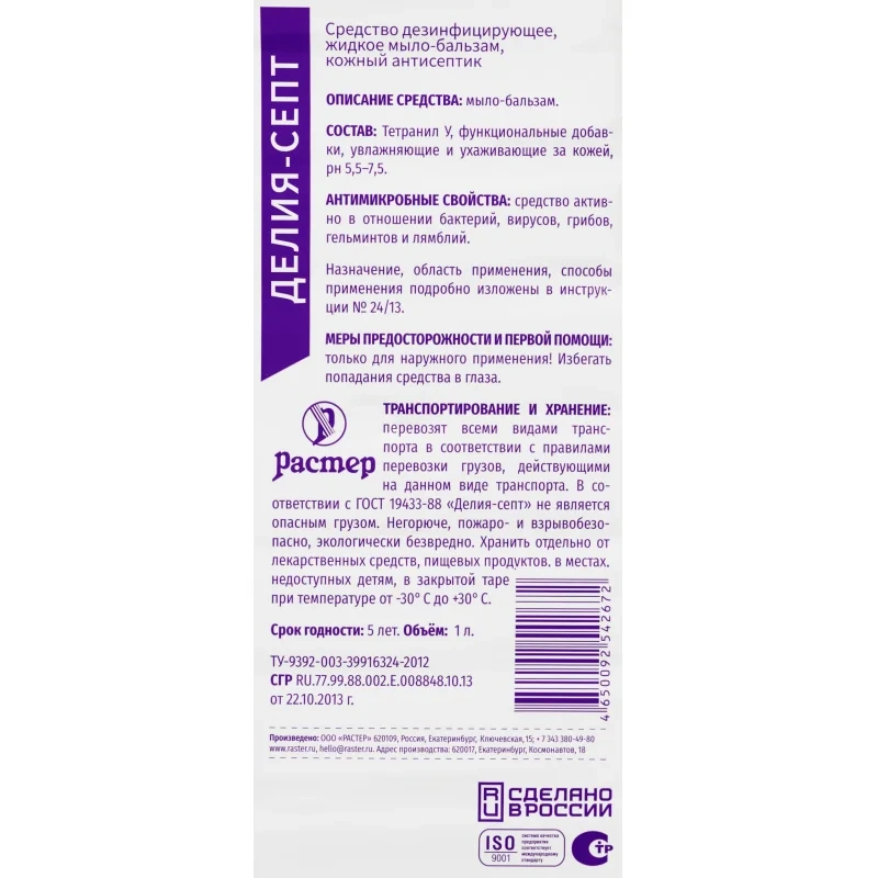 Жидкое мыло наливное Делия Септ 1л, с дезинфицирующим эффектом