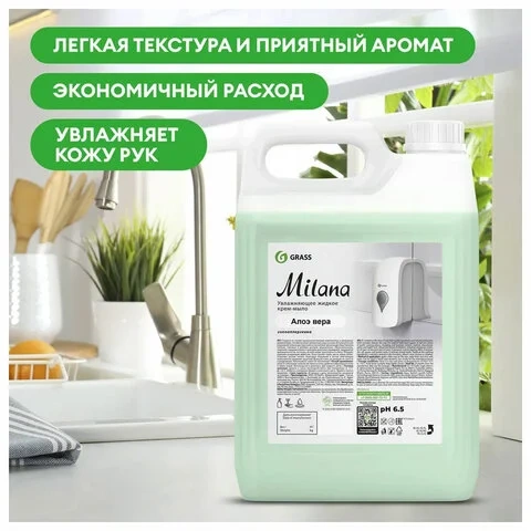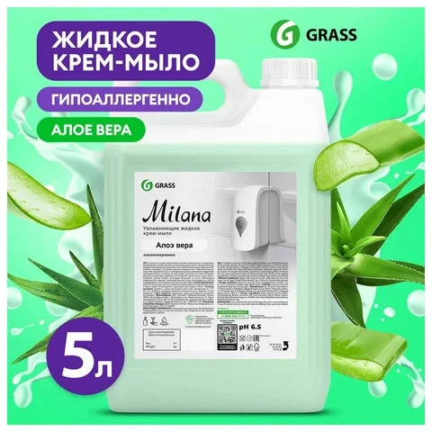 Жидкое мыло наливное Grass Milana 5кг, алоэ вера, 126605