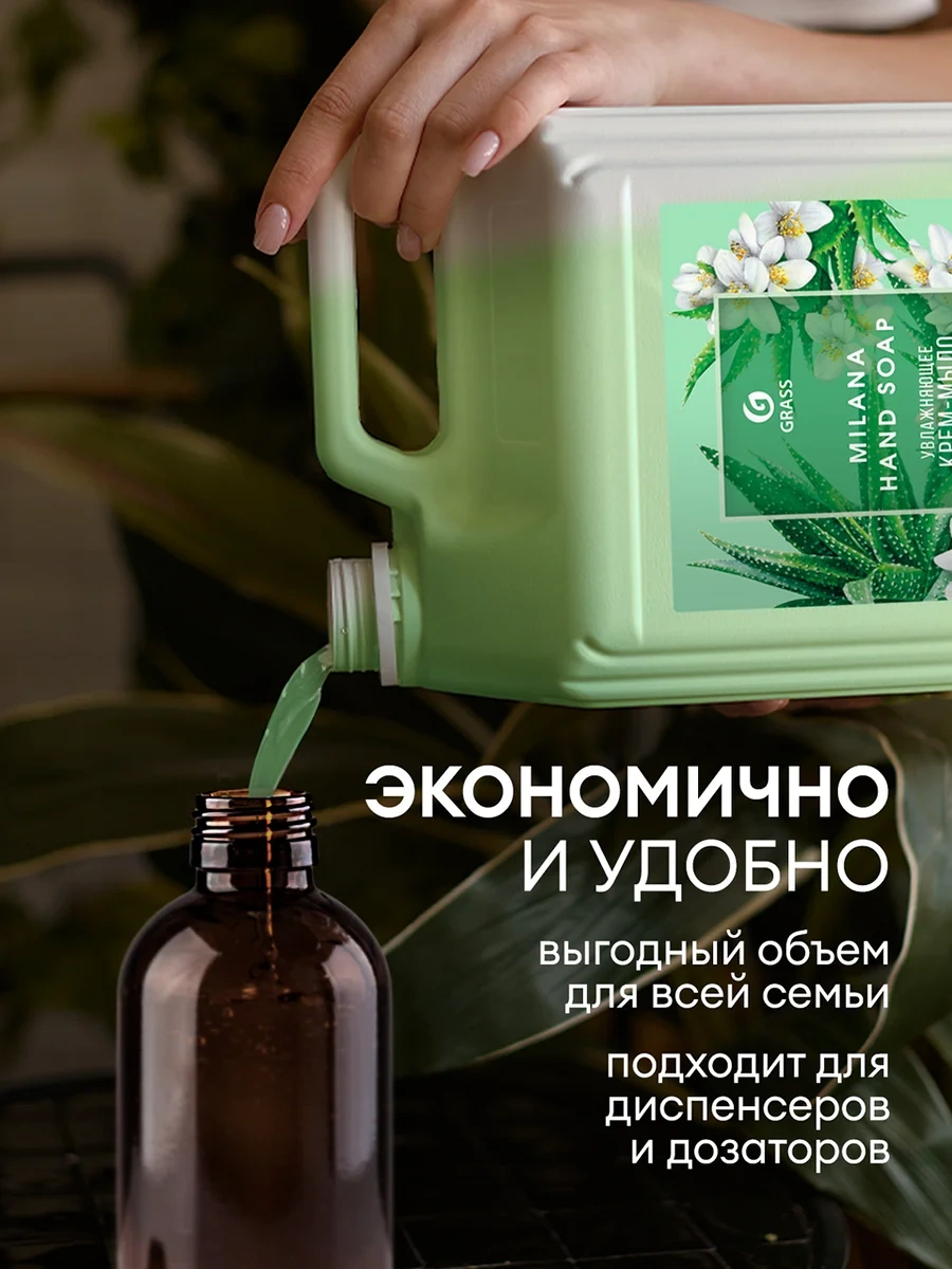 Жидкое мыло наливное Grass Milana 5кг, алоэ вера, крем, 126605