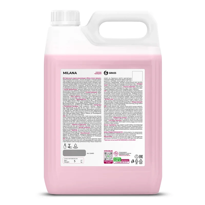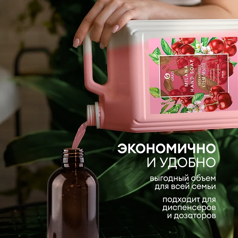Жидкое мыло наливное Grass Milana 5кг, спелая черешня, 126405