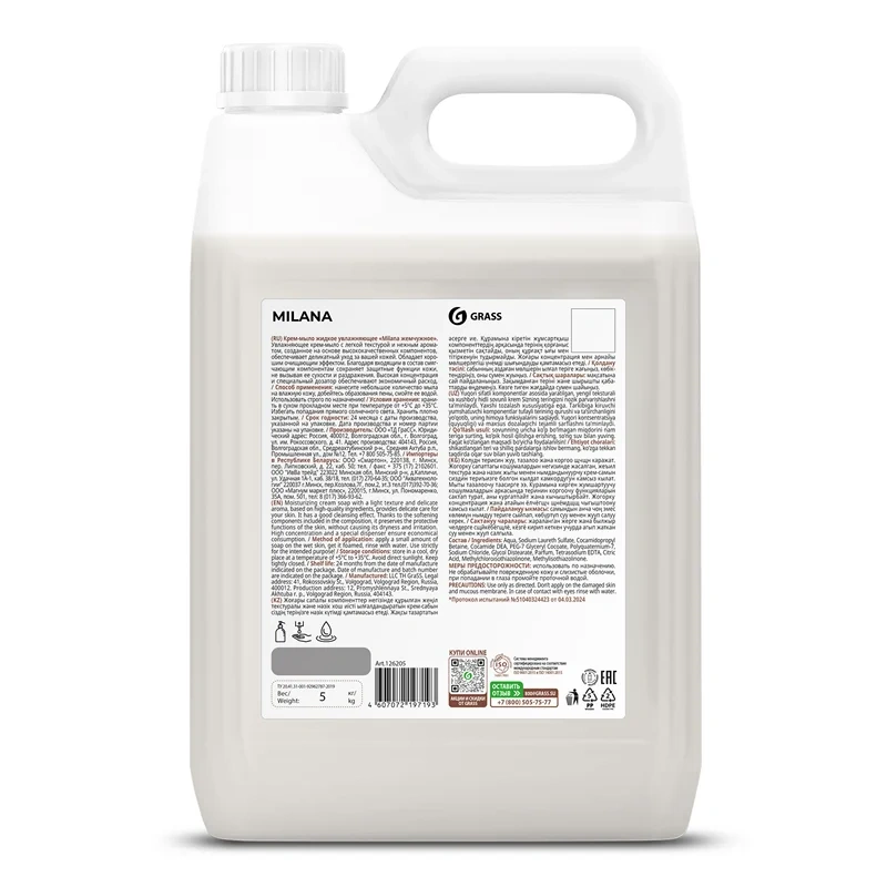 Жидкое мыло наливное Grass Milana 5кг, жемчужное, 126205