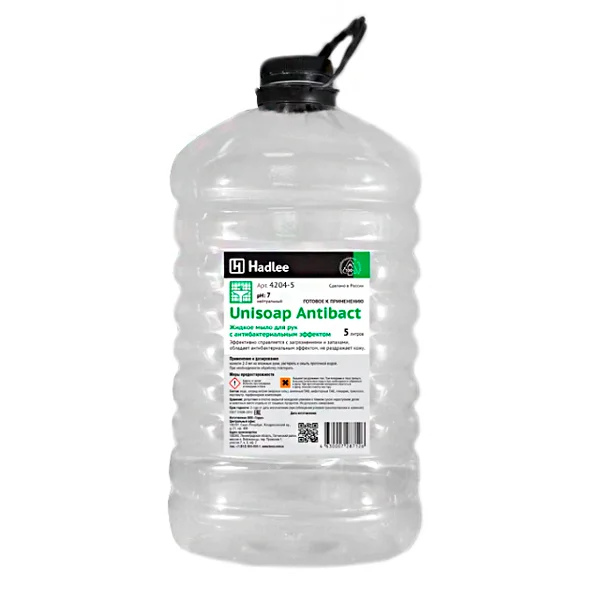 Жидкое мыло наливное Hadlee Unisoap Antibact 5л, антибактериальное, 4204-5