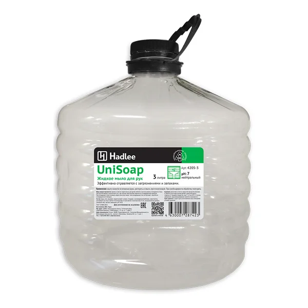 Жидкое мыло наливное Hadlee Unisoap (Юнисоп) 3л, белое, ПЭТ, 4205-3