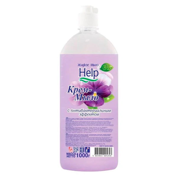 Жидкое мыло с дозатором Help 1л, с антибактериальным эффектом, крем