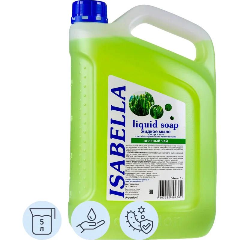 Жидкое мыло наливное Изабелла 5л, зеленый чай, антибактериальное, канистра