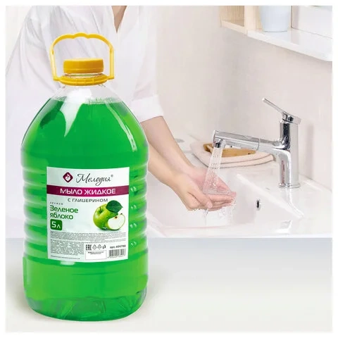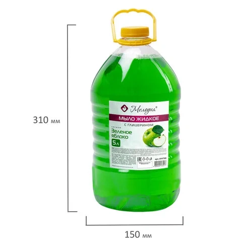 Жидкое мыло наливное Мелодия 5л, зеленое яблоко, с глицерином