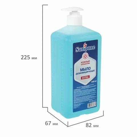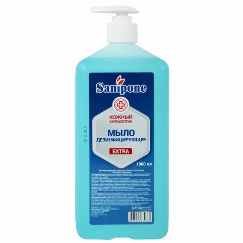 Жидкое мыло с дозатором Sanipone Extra 1л, с дезинфицирующим эффектом