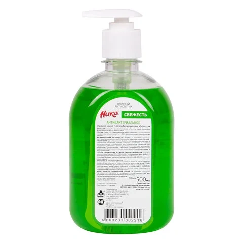 Жидкое мыло с дозатором Ника Свежесть 500мл, с антибактериальным эффектом