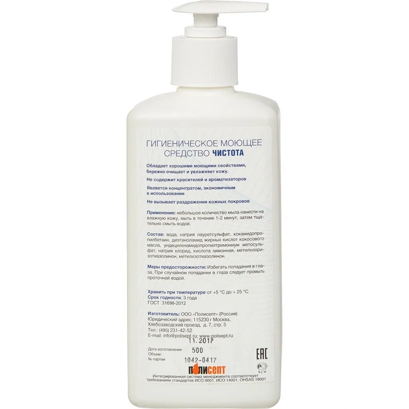 Жидкое мыло с дозатором Полисепт Чистота 500мл, с дезинфицирующим эффектом