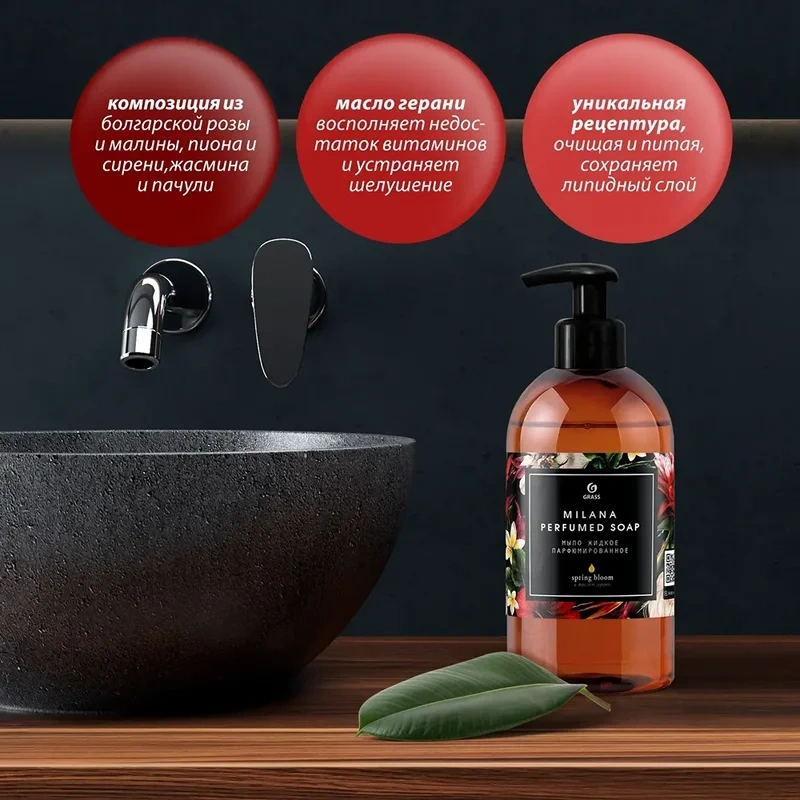 Жидкое мыло с дозатором Grass Milana 300мл, spring bloom, парфюмированное, 125448