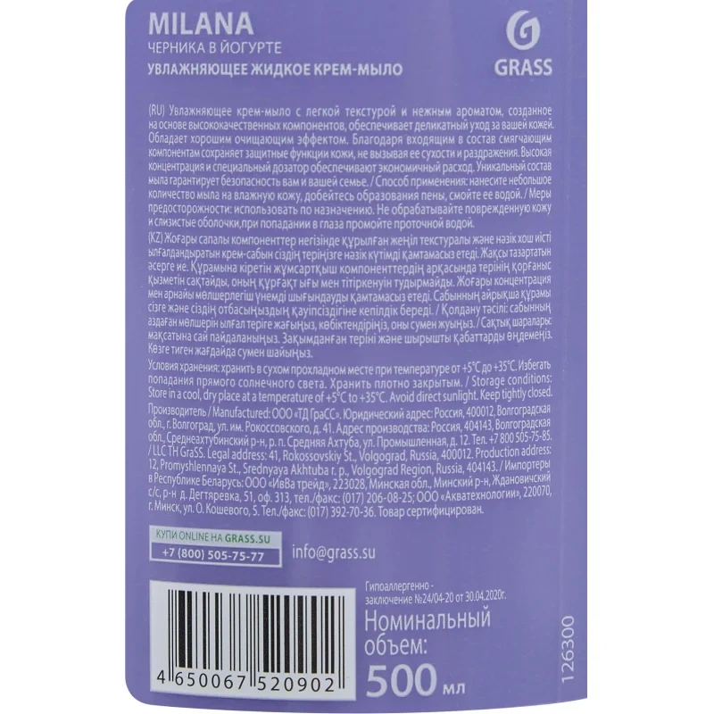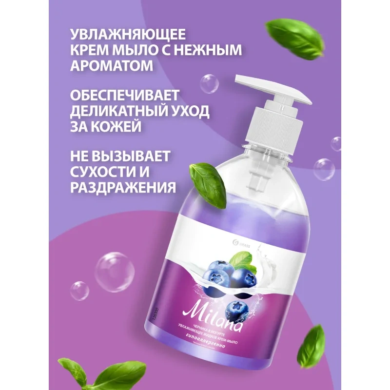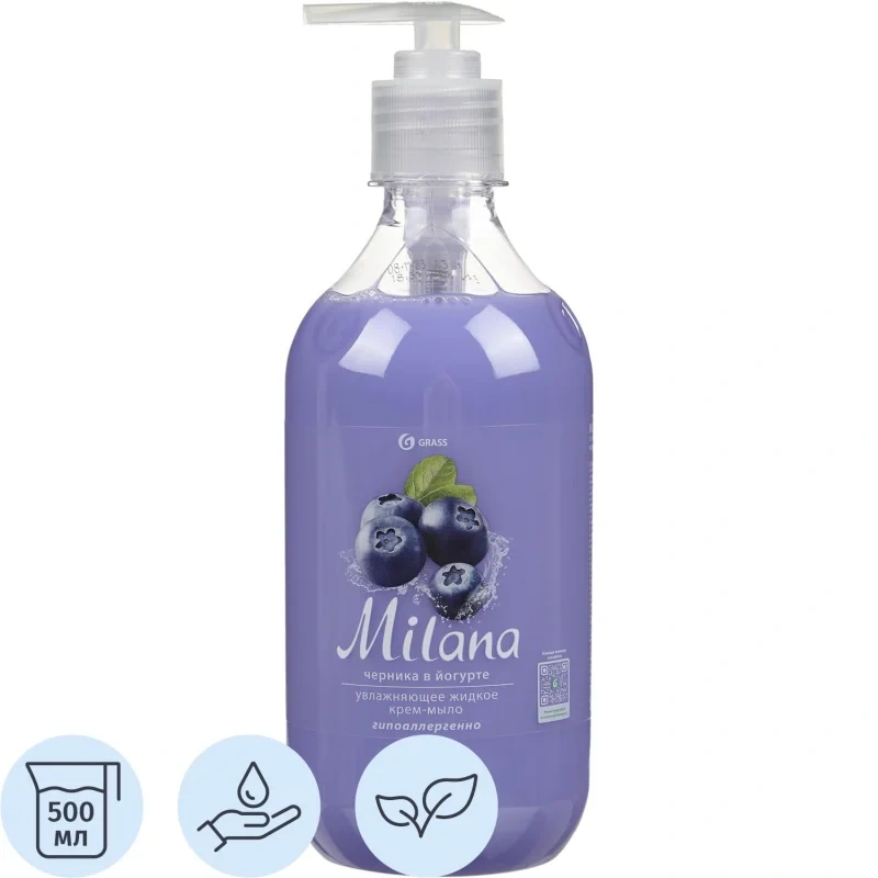 Жидкое мыло с дозатором Grass Milana 500мл, черника в йогурте, 126300