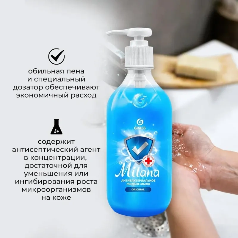 Жидкое мыло с дозатором Grass Milana 500мл, original, антибактериальное, 126705