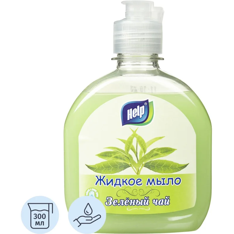 Жидкое мыло с дозатором Help 300мл, зеленый чай, флип-то