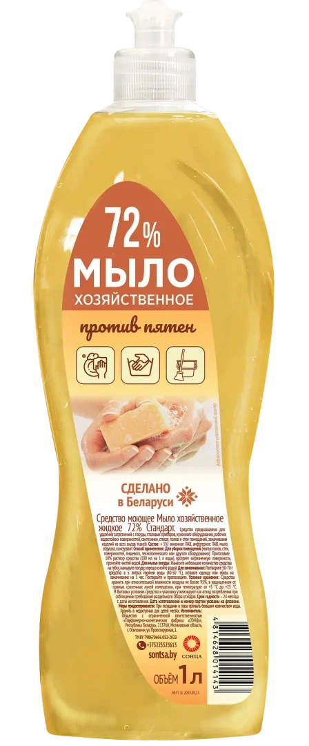 Жидкое мыло с дозатором Сонца 1л, хозяйственное, 72%, пуш-пул