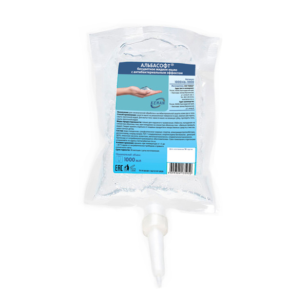 Жидкое мыло в картридже Keman Альбасофт для S1, 1л, бесцветное, антибактериальное, 100046-1000