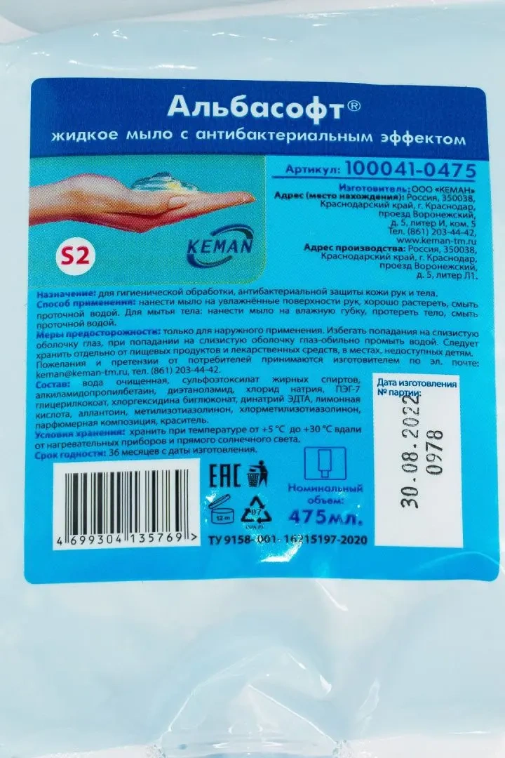 Жидкое мыло в картридже Keman Альбасофт для S2, 475мл, 100041-0475, антибактериально