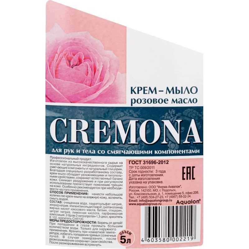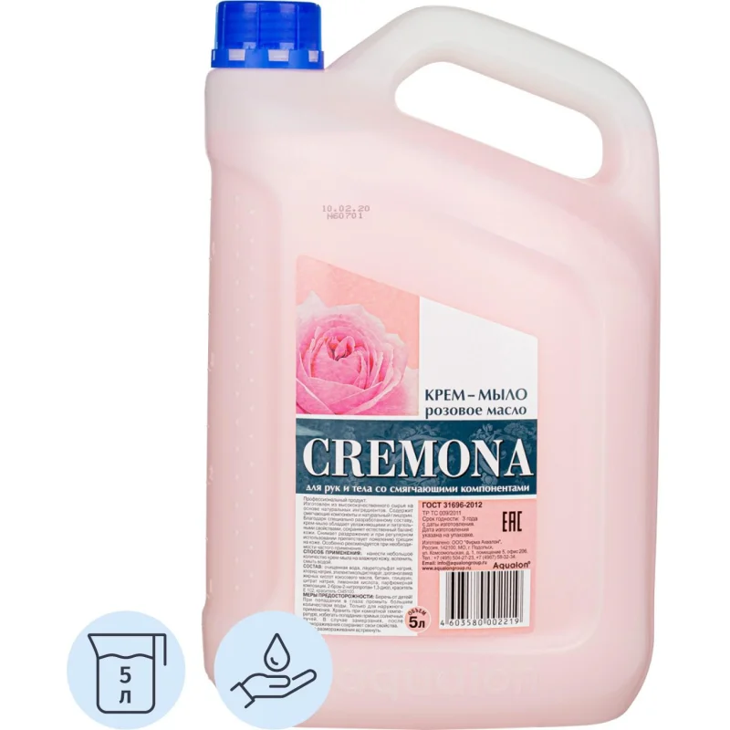 Мыло жидкое Крем-мыло КРЕМОНА 5л Розовое масло