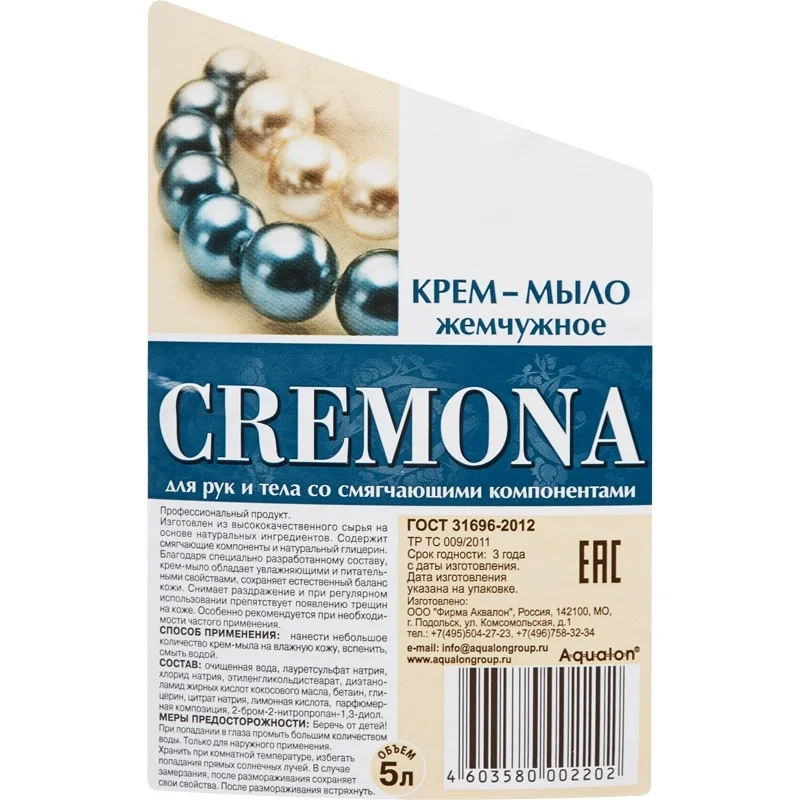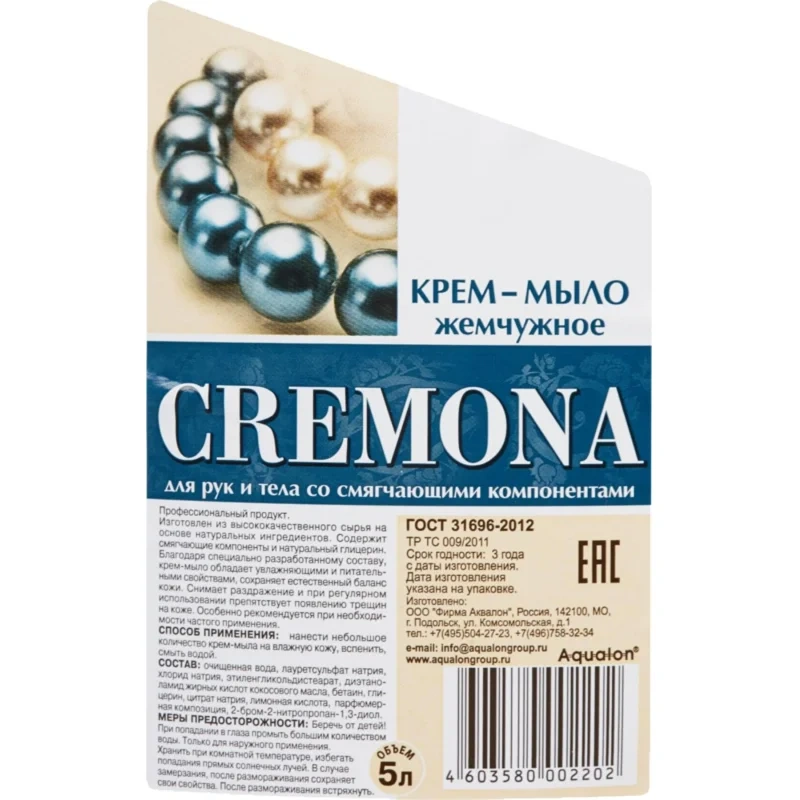 Жидкое мыло наливное Кремона 5л, жемчужное