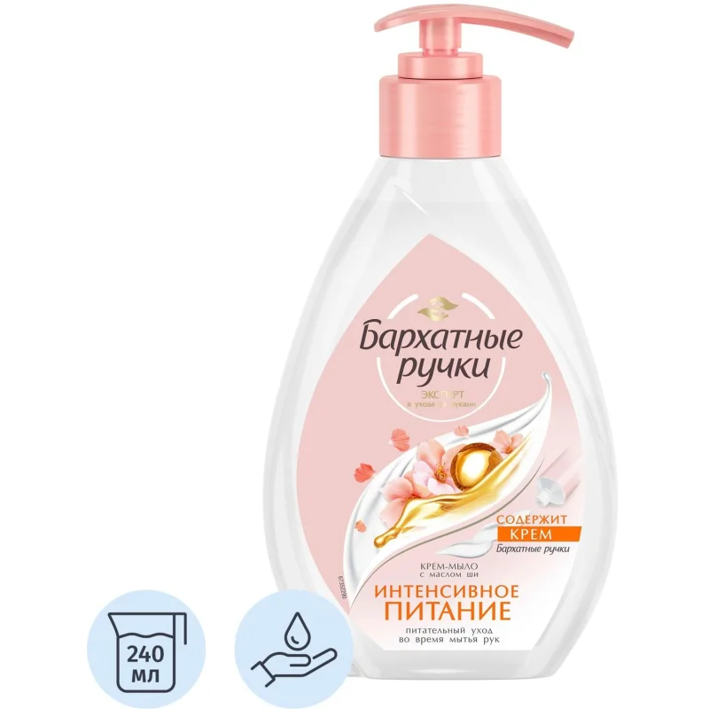 Жидкое мыло с дозатором Бархатные Ручки 240мл, миндальное масло