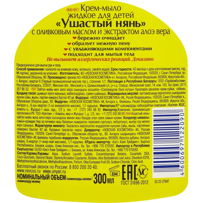 Жидкое мыло с дозатором Ушастый Нянь 300мл, детское