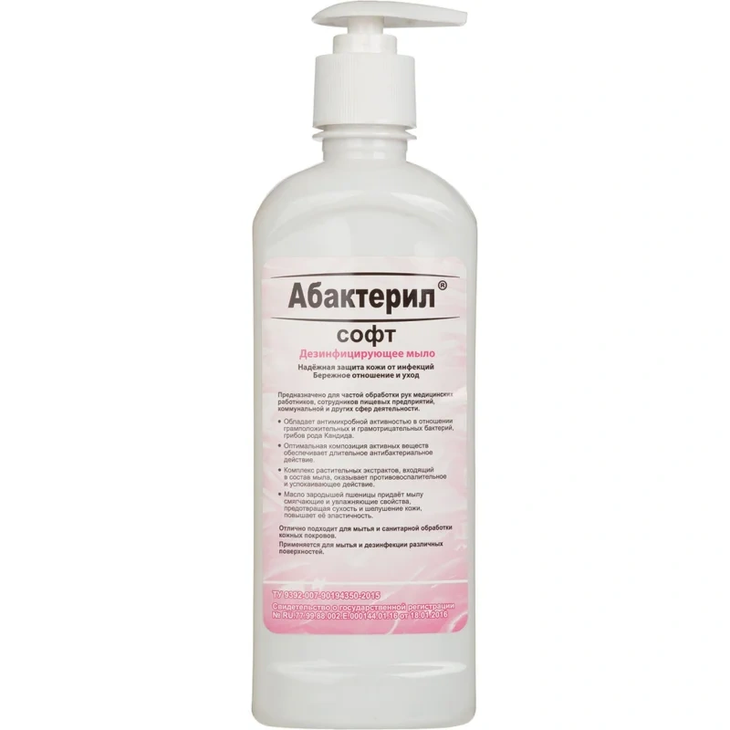 Жидкое мыло с дозатором Абактерил Софт 500мл, с дезинфицирующим эффектом, с дозатором