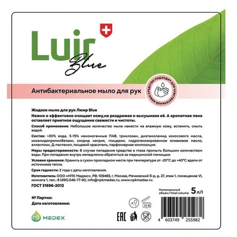 Мыло жидкое антибактериальное 5 л, ЛЮИР