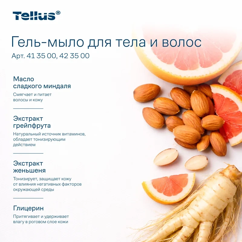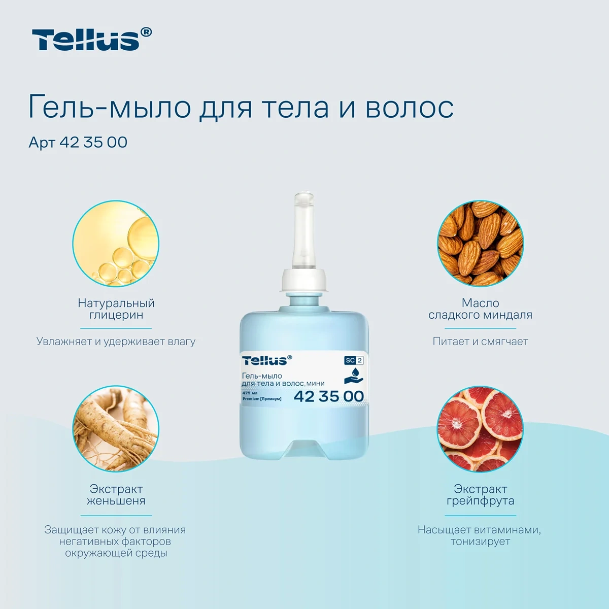 Жидкое мыло в картридже Tellus (tork) Premium SC1, 423500, для волос и тела, светло-голубое, 475мл