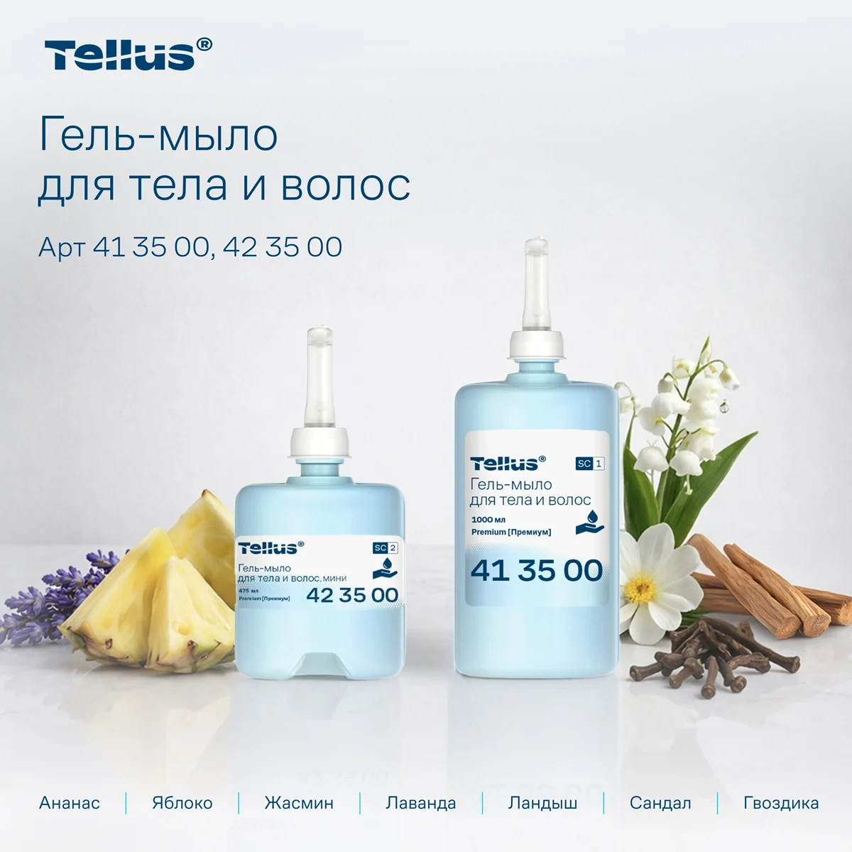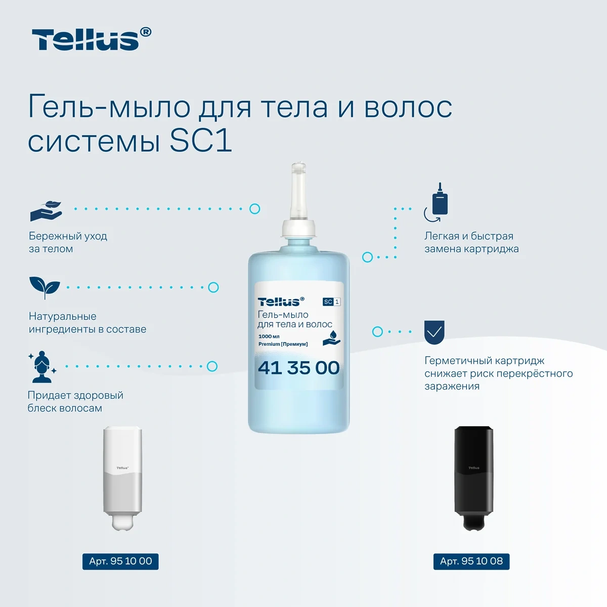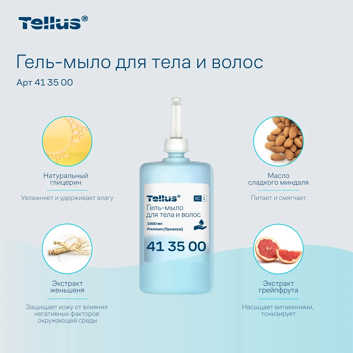 Жидкое мыло в картридже Tellus (tork) Premium SC1, 413500, для волос и тела, светло-голубое, 1л