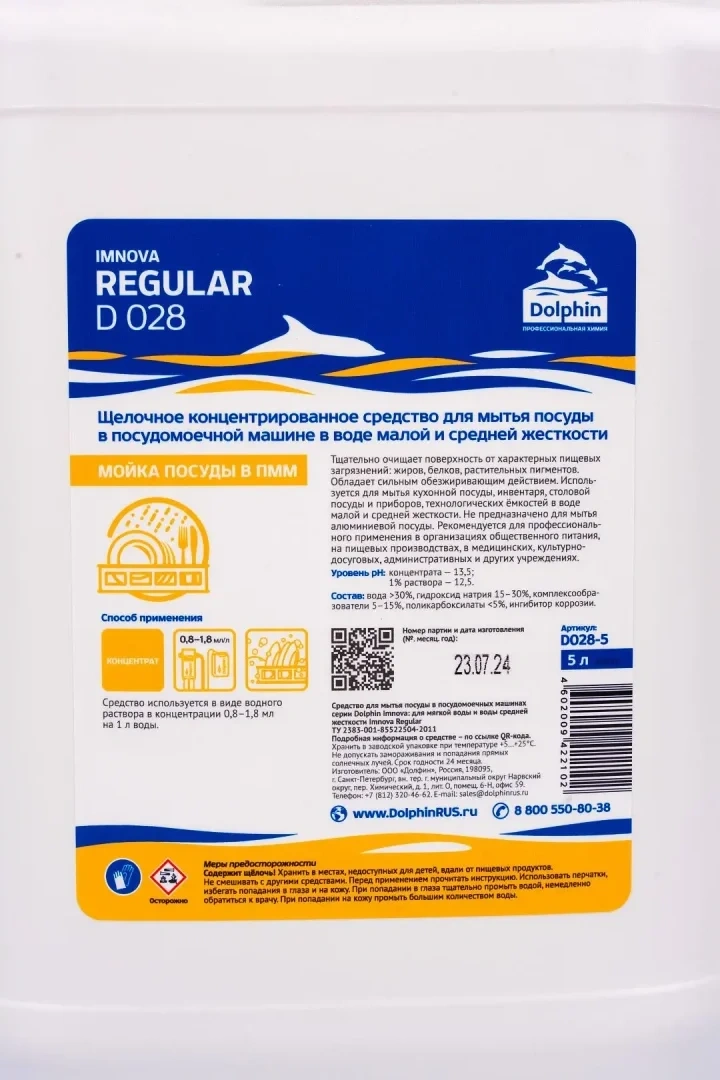 Жидкость для посудомоечной машины Dolphin Imnova Regular 5л, для мягкой и средней жесткости воды
