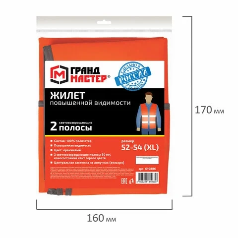Жилет сигнальный Грандмастер р.52-54, оранжевый, 2 светоотражающие полосы