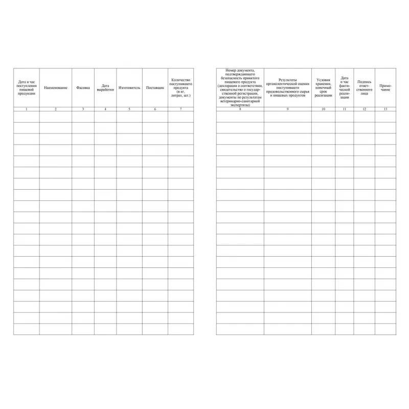 Форма журнала соответствует Приложению № 5 к СанПиН 2.3/2.4.3590-20 «Санитарно-эпидемиологические требования к организации общественного питания населения».