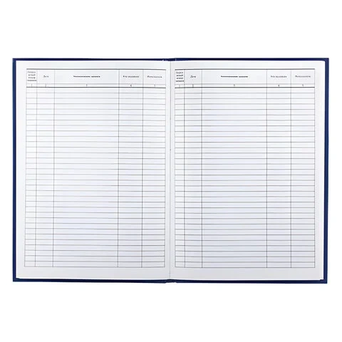 Имеет жесткую книжную обложку, покрытую синим бумвинилом плотностью 300 г/м2. Название на обложке выполнено тиснением фольгой. Вертикальная ориентация. Внутренний блок содержит 96 листов офсетной бумаги плотностью 60 г/м2 разлиновкой и текстом, облегчающими ведение записей. Формат А4 (200х290 мм).