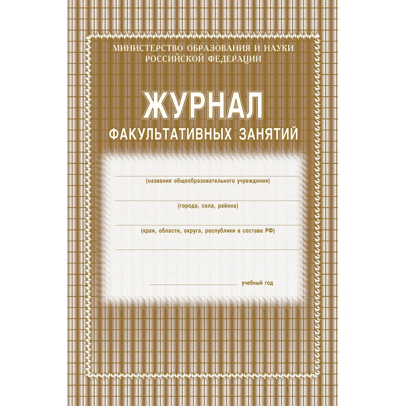 Журнал предназначен для учета работы факультативных групп и ведется в основных и средних общеобразовательных школах по каждому факультативу отдельно. Формат А4. Обложка выполнена в строгом стиле из мягкой цветной офсетной бумаги. Внутренний блок изготовлен из газетной бумаги, включает 48 страниц. Журнал построен по образцу классного журнала (ФИО ученика, колонки для отметок и т.д.).