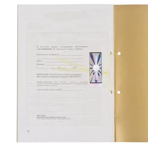 Журнал Кадры В Порядке регистрации приказов по личному составу, 32 листа, пломба, на сшивке