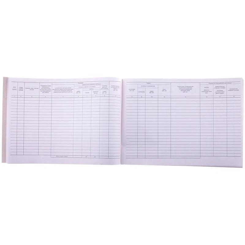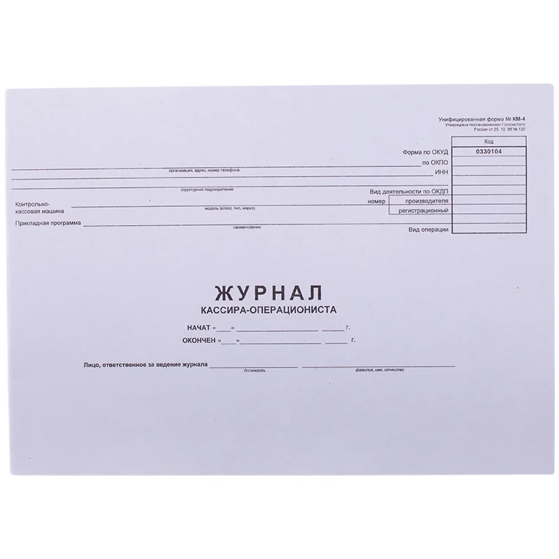 Журнал кассира-операциониста отлично подойдет для отражения в нем информации о приходе и расходе наличных денежных средств. Книга формата А4 выполнена в размере 280*190мм. Внутренний блок изготовлен из 48 листов газетной бумаги плотностью 45 г\\м2 в табличную линовку. Крепление – скрепка. Форма книги №КМ-4. Мягкая обложка изготовлена из картона белого цвета плотностью 200-220 г/м2. Книга имеет горизонтальную ориентацию.