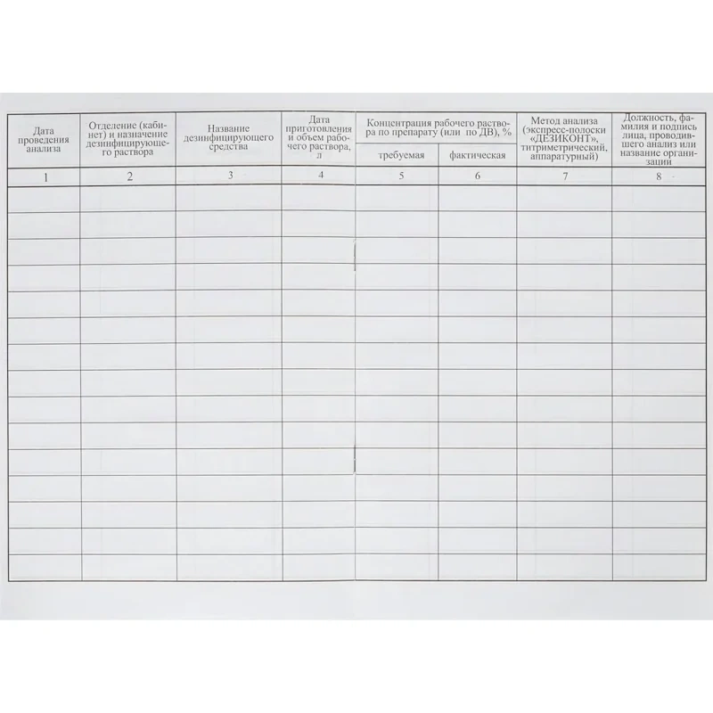 Журнал контроля концентраций рабочих растворов дезинфицирующих и стерилизующих средств