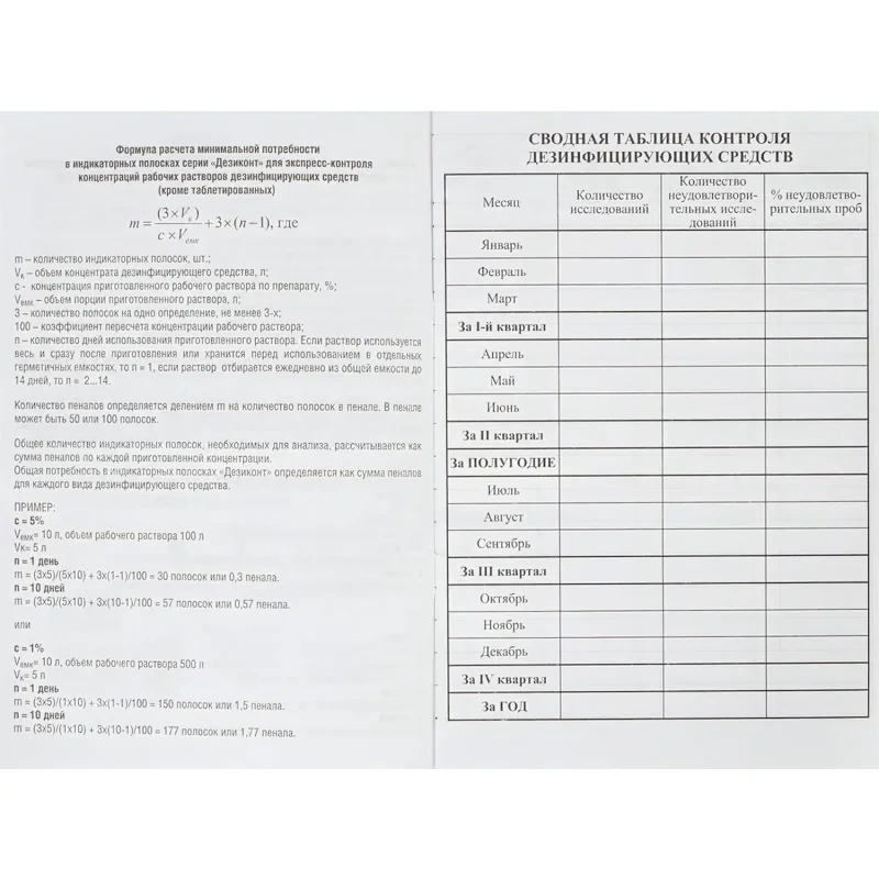 Журнал (книга учета) получения и расхода дезсредств и проведения дезинфекционных работ в профилактических целях на объекте. Производство: Россия, ООО НПФ 'ВИНАР' Книга учета - документ, удостоверяющий, что на данном объекте имеется необходимый запас дезинфицирующих средств и соответствующие условия для проведения дезинфекционных мероприятий в профилактических целях. В журнале рассчитываются необходимые количества дезинфицирующих средств, требующихся для обработки площадей вашего объекта, исходя из санитарных правил и методических указаний по применению дезинфицирующих средств. Расчет потребности объекта в дезсредствах, ведение учета их расходования является частью программы производственного контроля. Необходимость иметь расчет потребности объекта в дезсредствах определяется Постановлением Правительства г. Москвы 1065-ПП от 30.12.2003 г. 'О совершенствовании организации и проведения дезинфекционных, дезинсекционных и дератизационных мероприятий на объектах города Москвы', а также санитарными правилами по виду деятельности.