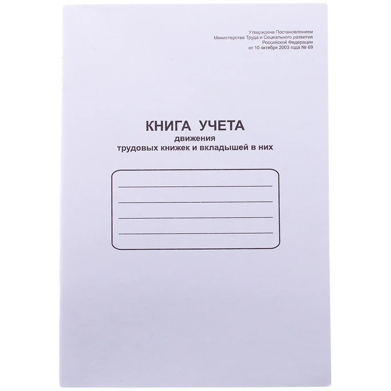 Книга учета движения трудовых книжек и вкладышей в них отлично подойдет для учета информции о движении трудовых книжек и вкладышей в них. Книга формата А4 выполнена в размере 200*290мм. Внутренний блок изготовлен из 48 листов офсетной бумаги плотностью 55 г\\м2 в табличную линовку. Крепление – скрепка. Мягкая обложка изготовлена из картона белого цвета плотностью 200-220 г/м2. Книга имеет вертикальную ориентацию.