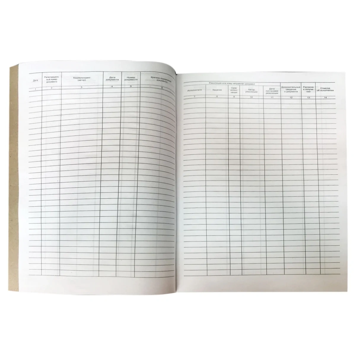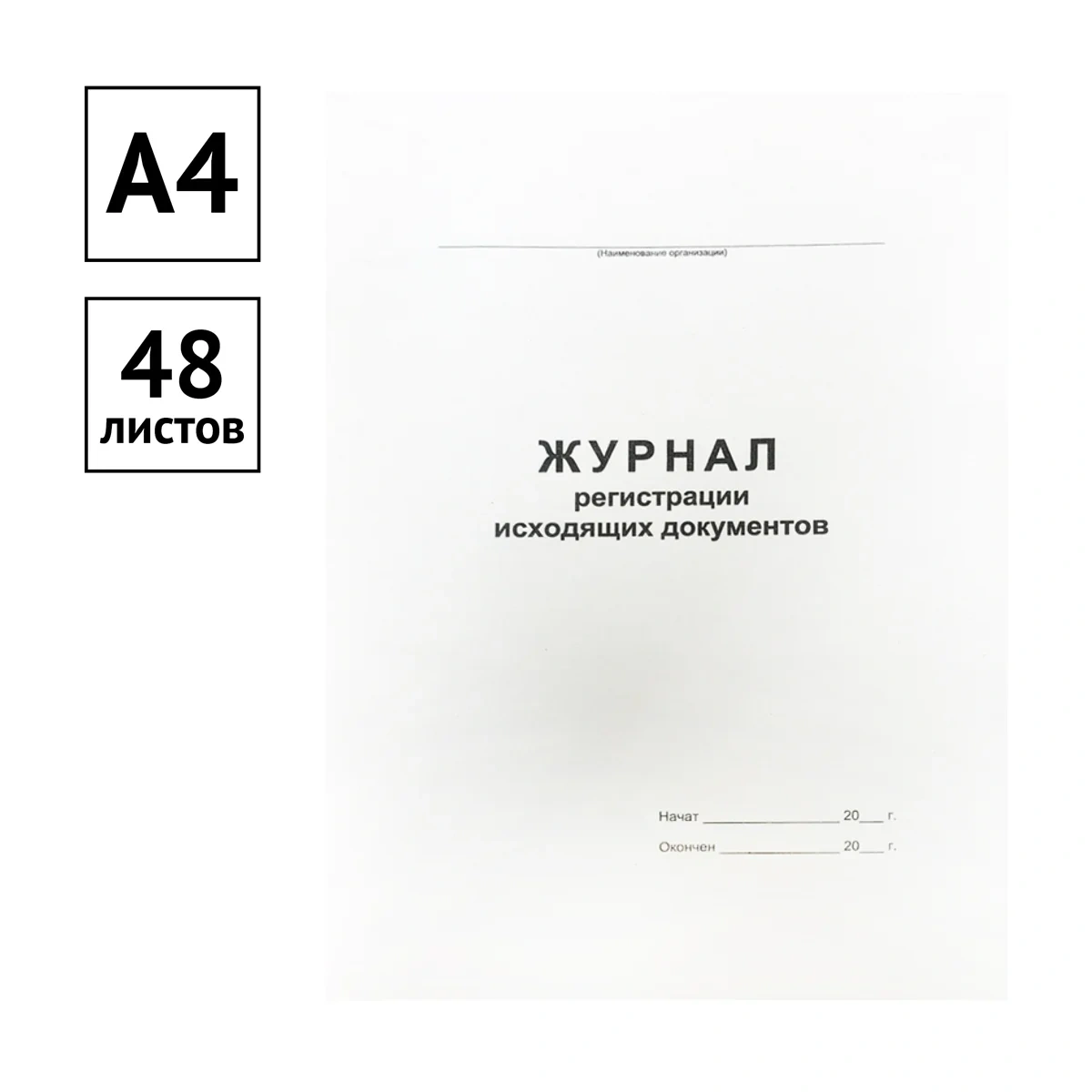 Журнал для регистрации исходящих документов. Журнал формата А4 выполнен в размере 200*290мм. Внутренний блок изготовлен из 48 листов офсетной бумаги плотностью 55 г\\м2 в табличную линовку. Крепление – скрепка. Мягкая обложка изготовлена из картона белого цвета плотностью 200-220 г/м2. Журнал имеет вертикальную ориентацию.